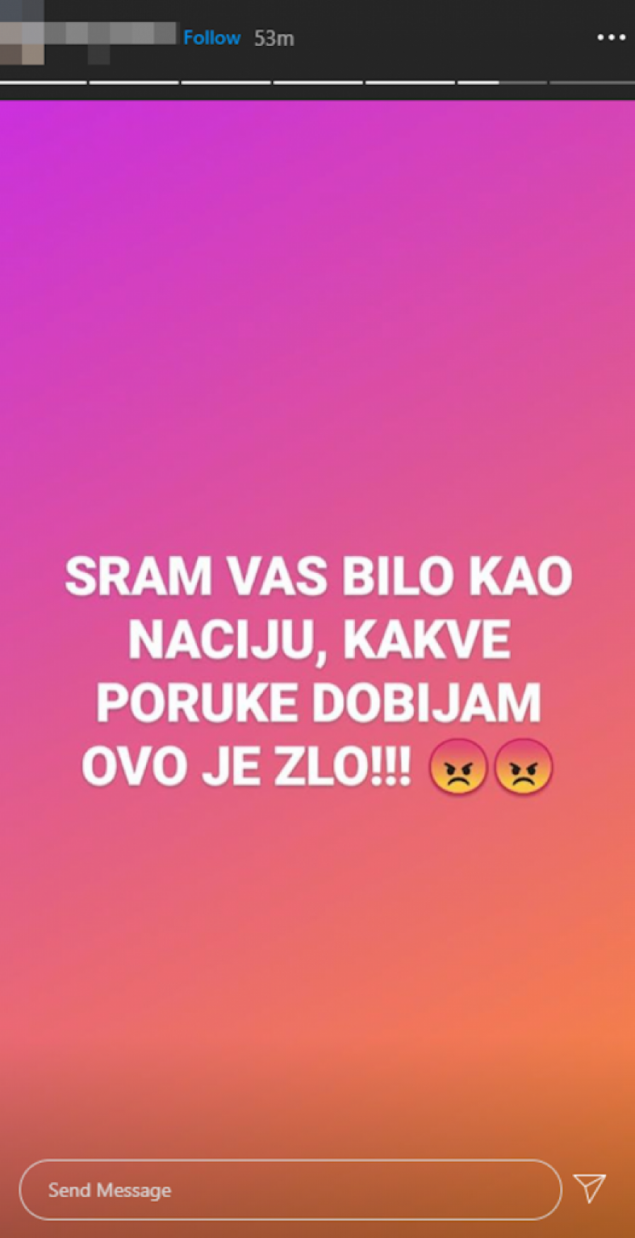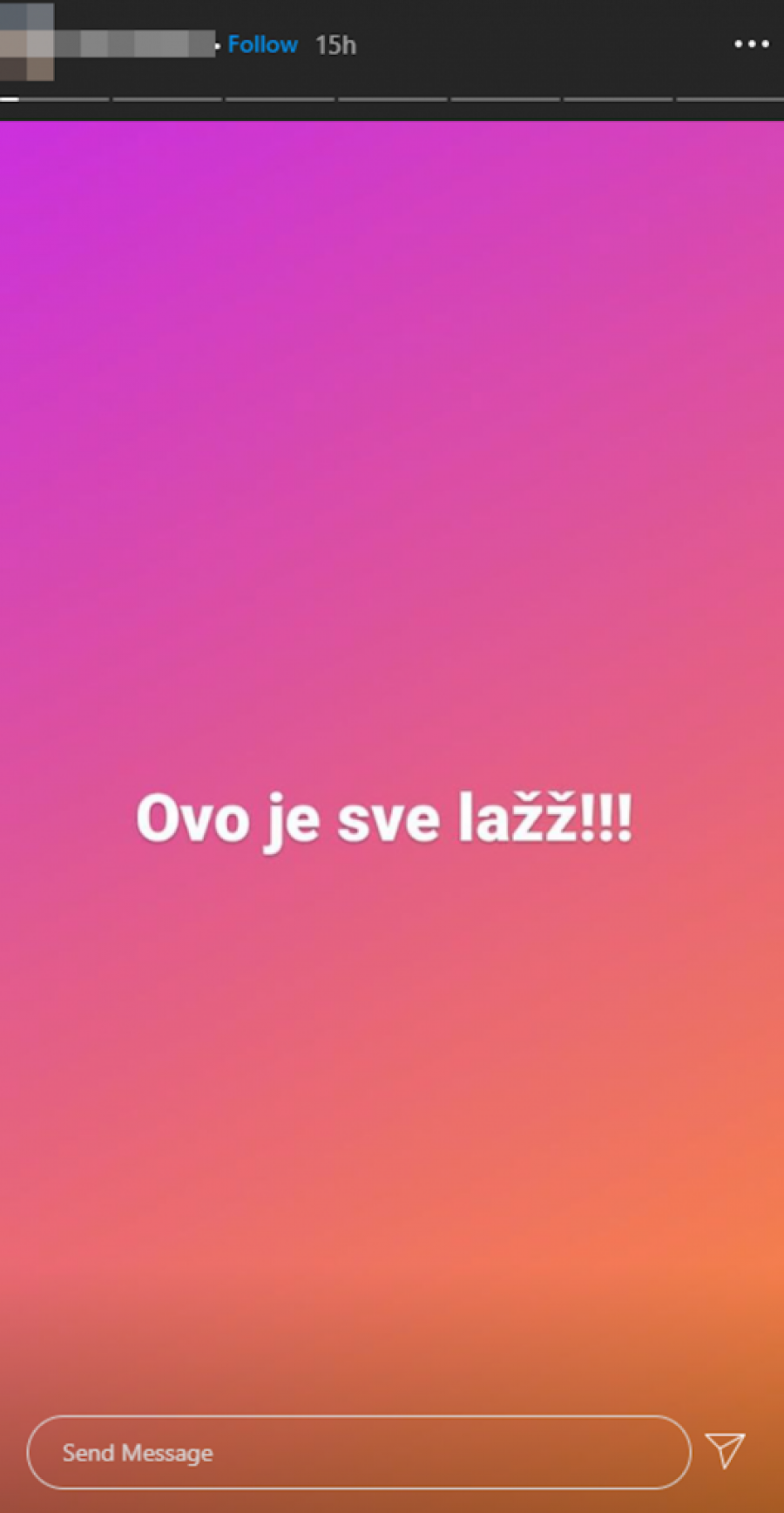 - Ovo je sve laž, sram vas bilo kao naciju, kakve poruke dobijam - napisala je na svom Instagram storiju.
