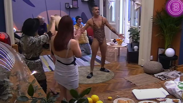 Kristina je pokazala bujni dekolte, Maja je pred cimere prošetala u crnom donjem vešu i pokazala zmijsko telo, a Davor je nastupio u tanga ženskom kupaćem kostimu leopard printa i sve nasmejao do suza!