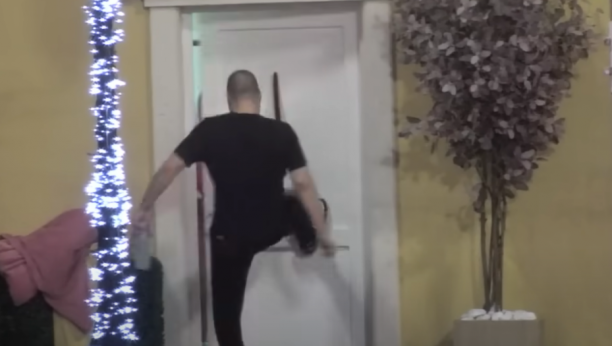 Zvezdan Slavnić ponovo je pokazao agresivno ponašanje kada je zverski šutirao vrata toaleta u kojem se nalazila Anđela Đuričić, a potom ju je polivao vodom.