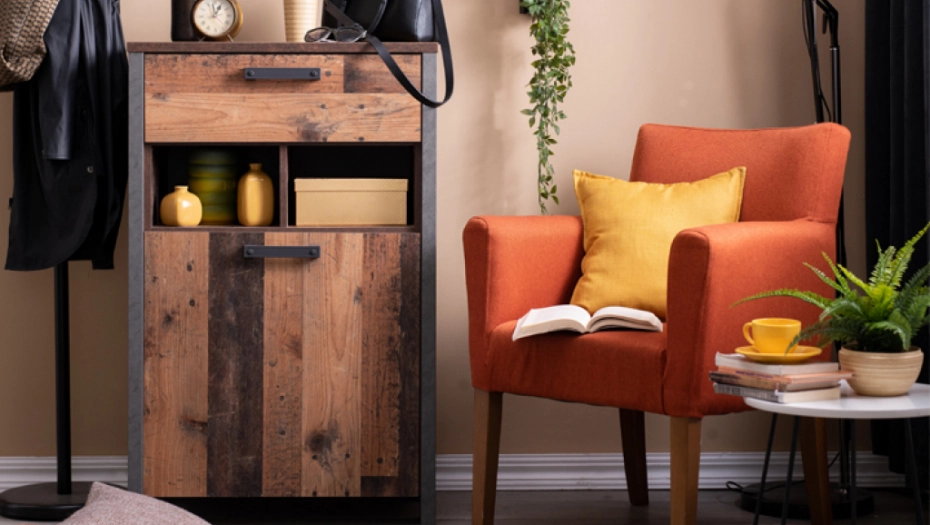 Ako ove jeseni poželite da transformišete svoj dom najnovijim dizajnerskim trendovima, ali ne želite da previše menjate izgled prostorije, probajte sa manjim komadima nameštaja. Za savršeni jesenji ambijent najbolje je da birate drveni nameštaj i predmete u zemljanim tonovima, a za toplinu i ušuškanost je najbolja žuta, kao dekoracija, ili možda čak i boja zidova. Kreiranje samo vašeg kutka, poput mesta za čitanje, doprineće vašoj radosti i miru. Idealni komadi za takav kutak su fotelja G01 u narandžastoj boji, uz koju bi se odlično uklopio cipelar CLIF CLFD211 u teksturi drveta, a neizostavan je i klub sto BJ-9852, na koji možete odložiti knjigu koju čitate ili postaviti dodatnu dekoraciju.