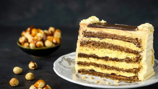 Biskvit: umutiti 6 belanaca sa 6 kašika šećera i jednom kašikom brašna, 6 kašika oraha i praška za pecivo. Ispeći dve ovakve kore.