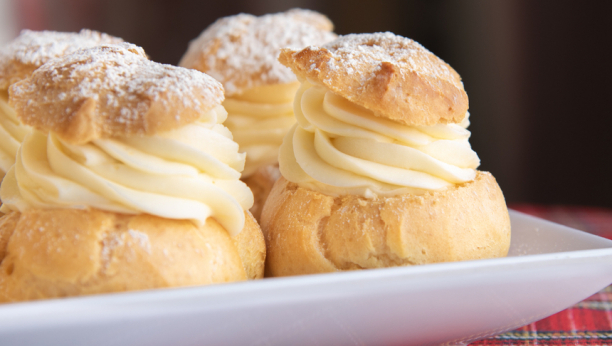 Čvrsto umutite slatku pavlaku sa šećerom i punite ohlađene princes-krofne.