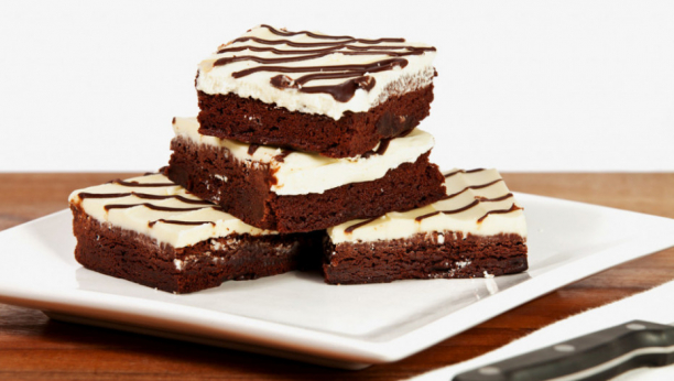 Na kraju rastopite čokoladu na pari i stavite na sloj karamele. Stavite kolač u frižider da se stegne, isecite na kockice i uživajte.
