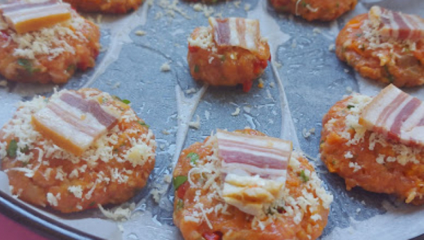 Ubaciti soli, bibera. ml. papriku i malo rendanog kačkavalju. Prohladjeno ubaciti u meso. Dodati jaje, prezle i peršunov list. Sve dobro izjednačiti. Ruke malo pouljiti pa praviti manje pljeskavice i redjati u pleh. Odozgo staviti po malo rendanog kačkavalja i mali listić suve slanine. Peći na 200 stepeni C oko 40 min. Uživajte u savršenstvu ukusa..predobro..