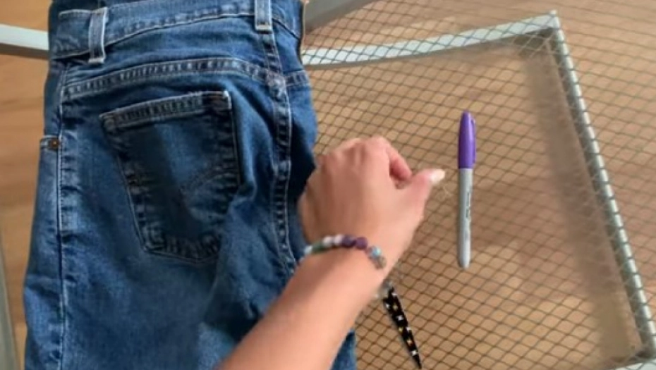Obucite stare farmerke i markerom obeležite željenu dužinu na jednoj nogavici.