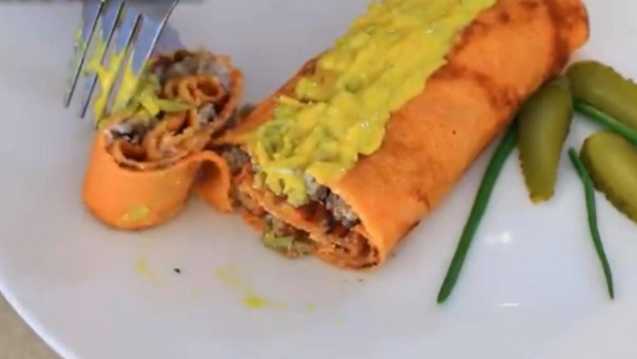 Ekstra mekane i ukusne: Slane crvene palačinke sa žutim sosom