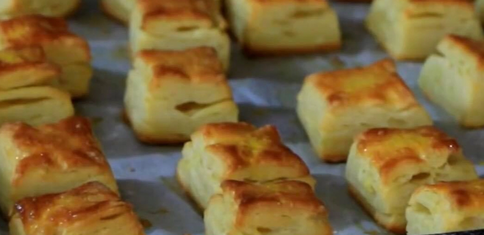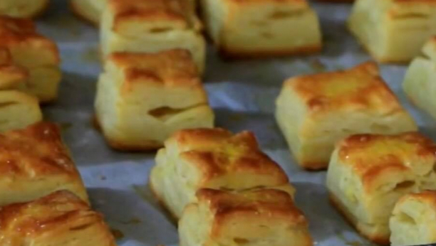 Ponovite još jednom ovaj postupak. Na kraju razvucite, isecite krajeve pa potom trake i kockice. Možete ih vaditi i čašicom. Složite na tepsiju obloženu pek papirom ili namazanu margarinom, ostavite da odstoje.