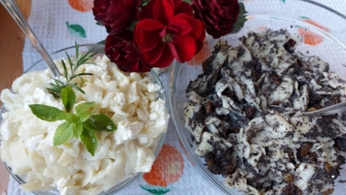 Mleven mak sjediniti sa 50 ml mleka sa šećero koliko želite ubaciti suvo grožde i staviti na šporet da provri minut dva. Sipati na testeninu i izmešati.