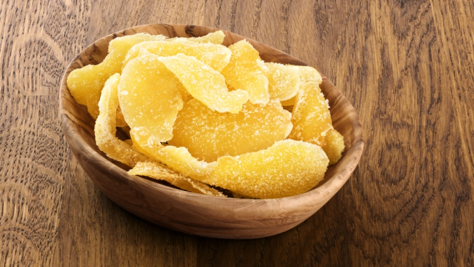Recept zahteva kristalizovani đumbir. Obično ga možete pronaći u odeljku za kolače u supermarketu ili u prodavnicama zdrave hrane. Kristalizovani đumbir su obično male kockice slatkog korena đumbira i „suv“ je, za razliku od konzerviranog đumbira u sirupu.