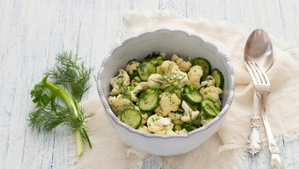 Karfiol dobro operem razdvoji o na cvetove, šargarepu i celer oljuštimo i seckamo na kockice, a šargarepu na kolutove obarimo u slanoj vodi da omekne (od proviranja oko 10 minuta) sa nebude previše mekano naseckamo i malo peršunovog lista.