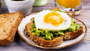Jaja ispecite "na oko"! Kriške tosta prepržite u rerni, na grill tavi ili u tosteru. Premažite namazom od avokada, pa stavite jaje. Po želji posolite i pobiberite!