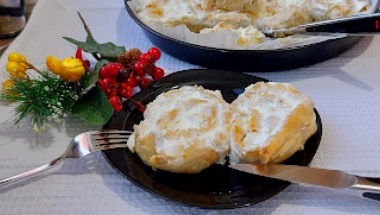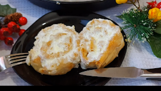 Rolnicu uviti u krug kao malu piticu. Redjati u podmazan pčeh ili obložen pek papirom. Premazati uljem i peći oko 35 min na 200 stepeni C da porumeni. Dok se pita pece napravimo preliv.