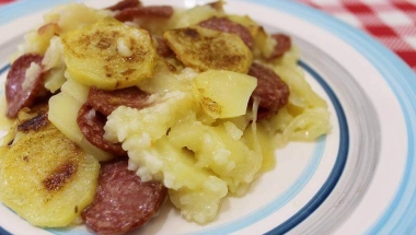 Starinsko sočno jelo koje možete da pravita sa bilo kojom vrstom kobasice, koju god da imate, dovoljan vam je jedan red kolutova. Luk ovom jelu daje slast, a pirinač u kombinaciji sa jako malo brašna pravi jelo kremastim.