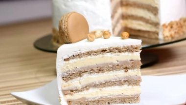 Ukoliko pravite tortu na sprat dok se peče zadnja kora umutiti 6 belanaca sa šećerom pa dodati lešnike, brašno i prašak za pecivo, sjediniti varjačom i istresti u obložen veliki pleh od rerne. Peći oko 15 minuta. Ohladiti i skinuti papir.