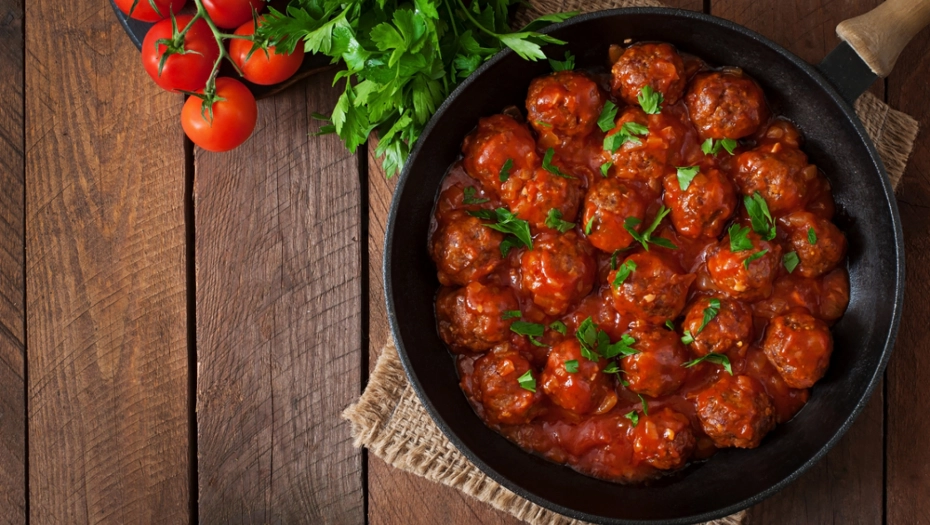 Ćufte pržiti po pola minuta na svakoj strani. Sada možete ubaciti i parče slanine zbog arome. Nakon što su ćufte pržene izvadite ih i u to ulje sipati kašiku brašna da se isprži. Zatim dodati vodu, paradajz, šećer i suvi biljni začin i sačekati da provri pa vratiti ćufte i slaninu i krčkati 45 minuta uz povremeno mešanje.