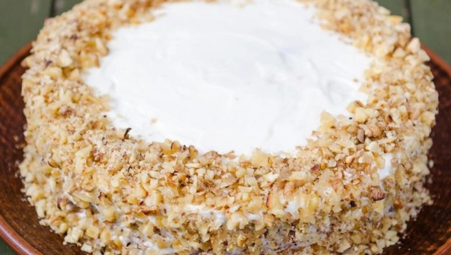 Tortbu premazati preostalim filom (po želji može i šlagom) i posudi seckanim ili mlevenim orasima.