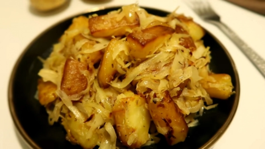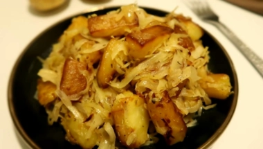 Luk iseći na rebra pa ga dinstati 10 min na tihoj vatri. Dodati na rezance kiseo kupus pa i njega dinstati 30 min na tihoj vatri bez dolivanja vode.