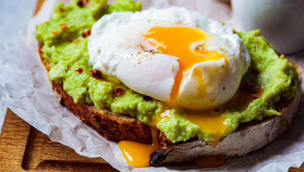 Jaja ispecite "na oko"! Kriške tosta prepržite u rerni, na grill tiganju ili u tosteru. Premažite namazom od avokada, pa stavite jaje. Po želji posolite i pobiberite!