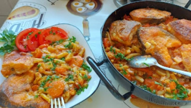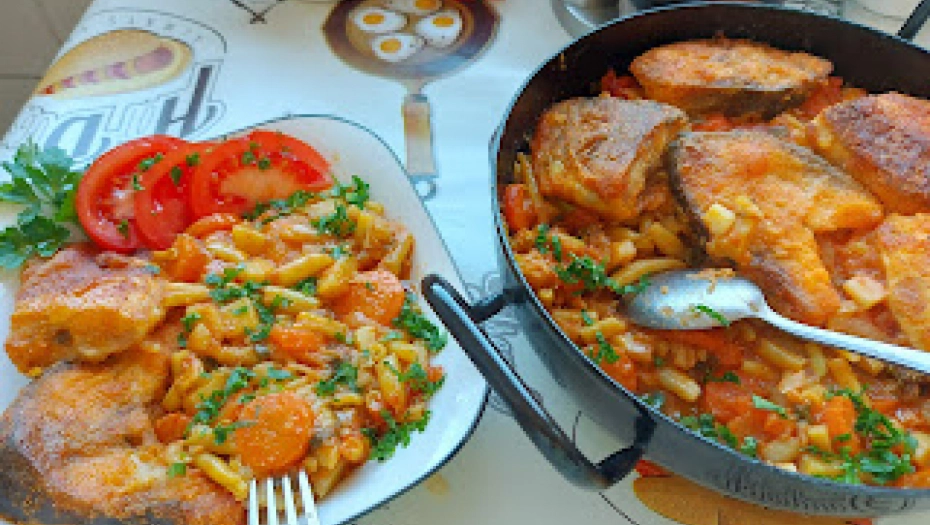Izmešati brašno jedno i drugo, dodati papriku crvenu, 1 kašičicu belog luka u granulama i uvaljati ribu poredjati po boraniji.
