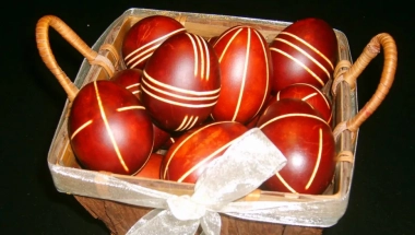 Dodajte u vodu dve kašike sirćeta i stavite je na vatru. Dok voda ne proključa, jaja možete ukrasiti travkama na tradicionalan način. Pokvasite jaje, na njega "prilepite" travku ili cvet, pa ubacite u čarapu ili gazu.