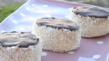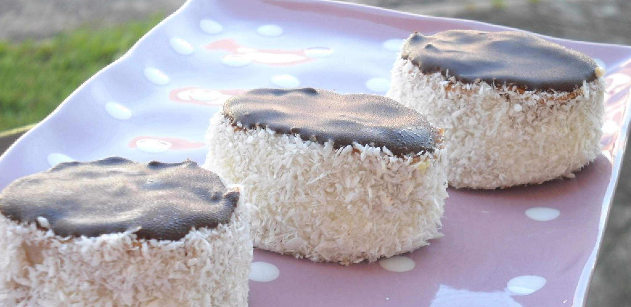 Odvojite žumance od belanaca i belance istucite u čvrt sneg. Žumancima dodajte šećer i tucite dok ne postane svetlo i penasto. Dodajte ulje i vodu i dobro promešajte. Brašno pomešajte sa praškom za pecivo, te ga dodajte u smesu jaja i šećera i mešajte dok se ne sjedini. Umešajte sneg od belanaca i smesu podelite na dva dela, te u jedan deo dodajte kakao.Ispecite dva biskvita, svaki posebno, u velikom plehu.Pecite ih na 180 stepeni 10-15 min. Manjim okruglim kalupom ili čašom iz oba biskvita isecite krugove (najbolje dok su biskviti još vrući). Prašak za puding pomešajte sa šećerom, vanilin šećerom i malo mleka, te ga ukuvajte u ostatak mleka. Puding ohladite, a zatim mu dodajte izrađeni maslac, te dobro izmešajte električnim mikserom. Na tamni krug od biskvita stavite kašičicu fila, razmažite i poklopite žutim krugom. Tako dobijenu „torticu“ premažite kfilom i sa strane (obod), te uvaljajte u kokosovo brašno.