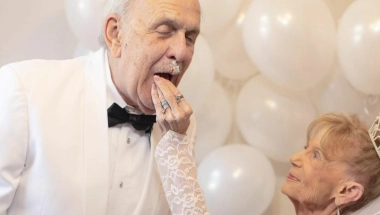 Karen i Geri Rajan iz američke države Ajdaho su proslavili godišnjicu svoje ljubavne priče s dvoje dece i petoro unučadi, tako što su se fotografisali na isti način kao tog dana kada su se venčali. Iako je to bilo pre 59 godina, Karen je čak obukla i svoju venčanicu! Oni su ponovili prvi poljubac i sečenje svadbene torte, a sve je aparatom zabeležila njihova unuka. Karen i Geri se i posle više od pola veka svakog dana ljube, grle i kažu jedno drugom „volim te“. Možda je to recept za večnu ljubav!