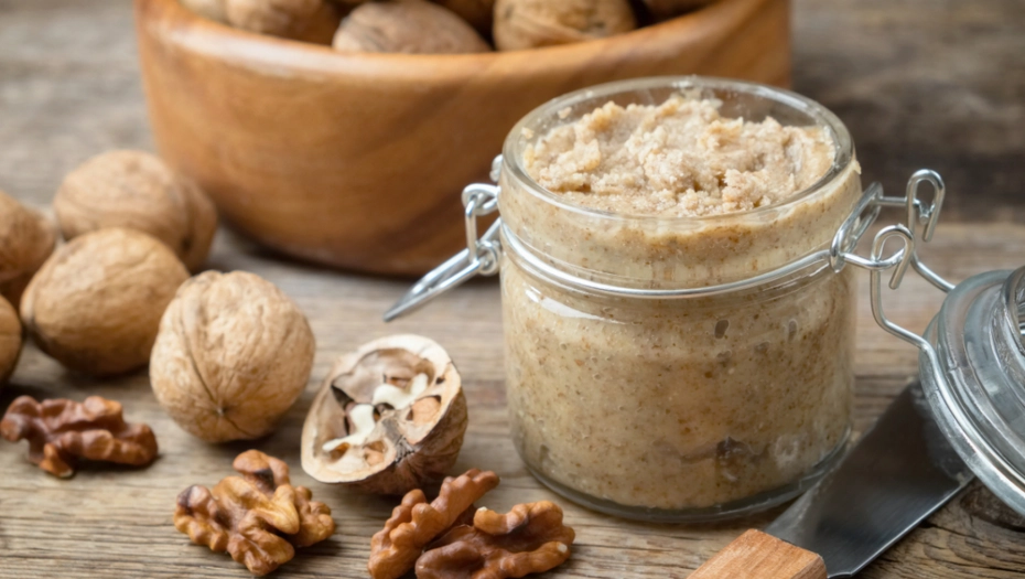 U smesu ubacite sitno iseckane ili mlevene orahe i suvo grožđe i ponovo sve promešajte.