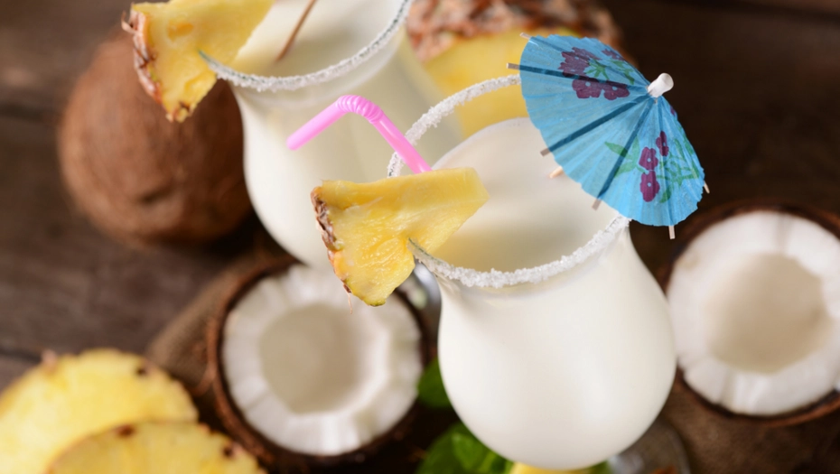 Treći korak: Sipati i služiti u visokim čašama, sa dekoracijom u vidu kriški ananasa i višnje na vrhu