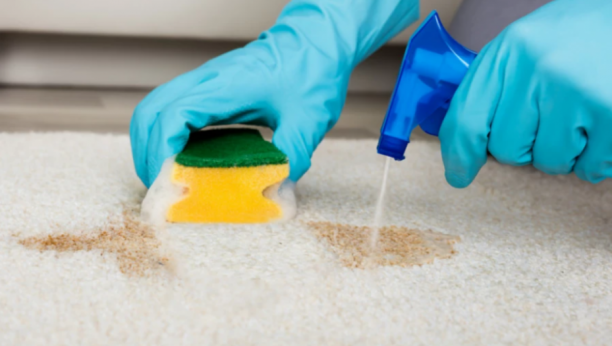 Ujutro samo usisivačem sakupite sodu bikarbonu, a onda napunite flašicu s raspršivačem sirćetom i hladnom vodom, u jednakoj razmeri i time poprskate tepih, pa izribajte tvrdom četkom.