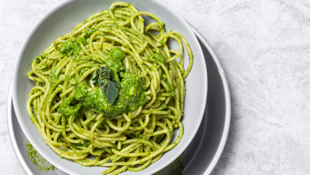 Pastu skuvati prema uputstvu na pakovanju. Ostaviti oko ½ šolje vode u kojoj se kuvala, kad bude gotova. Ocediti testeninu i vratiti je u šerpu. Umešati sos i dodati po potrebi vodu u kojoj se kuvala testenina ako je previše gusto. Služiti sa ricotta sirom.