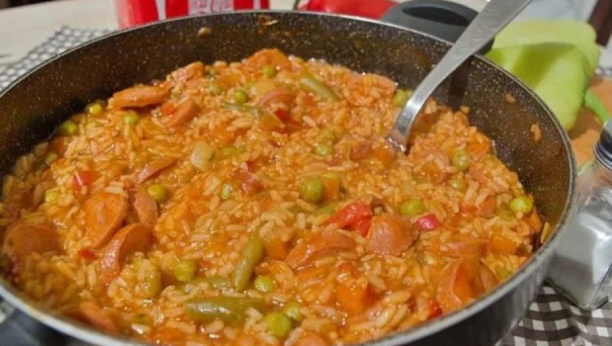 Još malo promešajte i kada je pirinač mekan jelo je gotovo jer je povrće, kao i kobasica već polu skuvano. Prijatno.