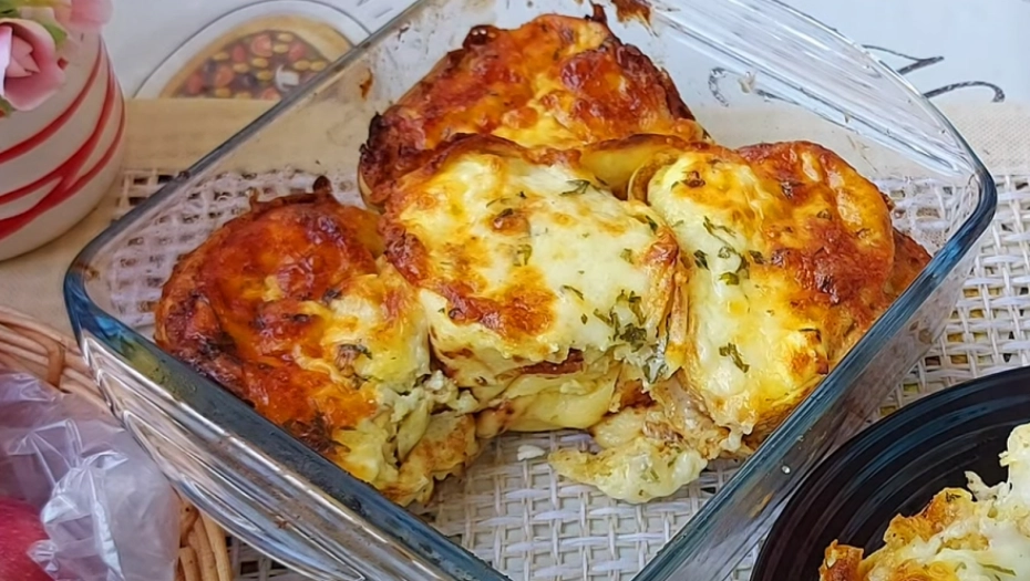 Puniti ostatkom nadeva odozgo i obilno narendati kačkavalja.