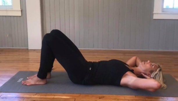Prvo, lezite na pod i pobrinite se da su vam kolena udaljena od kuka.