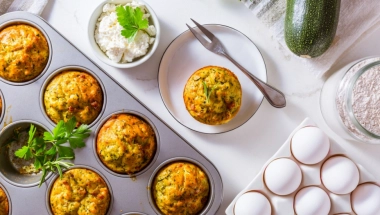 Dobro izmešati da se sve lepo sjedini. Ako je smesa ređa, dodajte još malo brašna. Sipati u kalupe za mafine, posipati odgore kukuruznim grizom i peći u kalupu na 220°C 20 minuta.