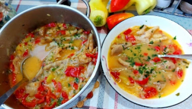 Na pola kuvanja dodati seckanu papriku i kuvati još malo da se nogice skuvaju i ispari malo tečnosti i postane gusta.