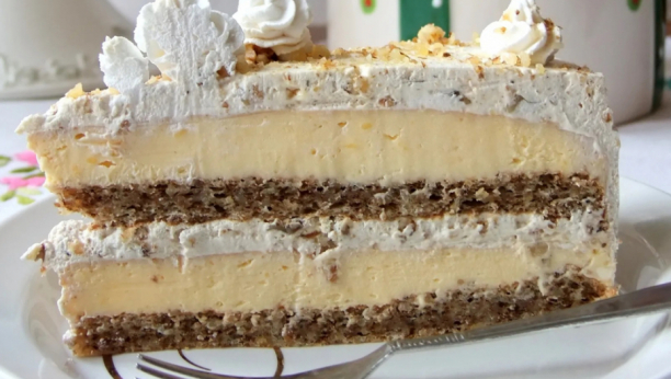 Fil:1. Sjediniti 18 žumanaca s 250 g šećera u prahu i kuvati na pari neprekidno mešajući dok se ne zgusne.