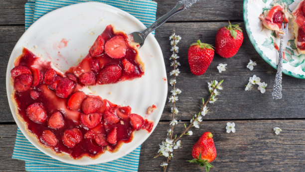Utisnite testo u kalup za tart ili neki drugi plitki kalup i izbockajte viljuškom. Stavite da se peče na 180 stepeni 20 minuta. Ohladite.