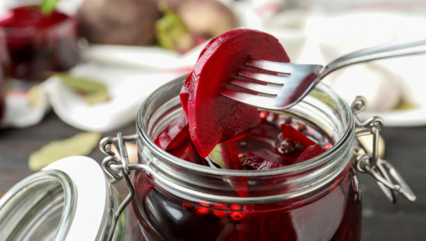 Od momenta kad prokuva voda, kuvati oko sat vremena, paziti da se cvekla ne prekuva. Kuvanu cveklu prohladiti, pa oguliti. Rezati na listiće. Prokuvati vodu, šećer, so i sirće, skloniti sa vatre, pa dodati vinobran.