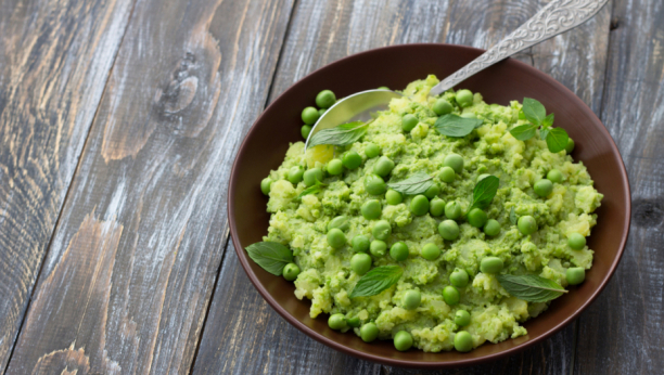 Skuvati grašak. Tako skuvan grašak ocediti pa dobro izgnječiti ili sataviti u secka, blender šta imate. Na zagrejanom ulju beo luk kratko propržiti.