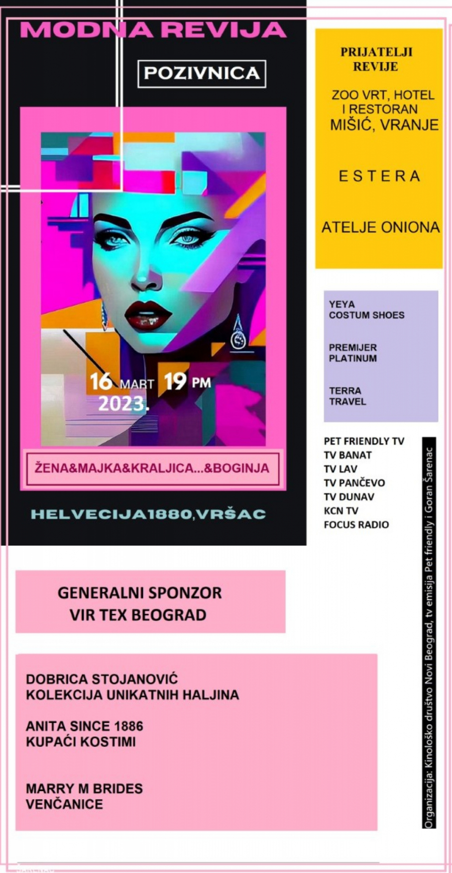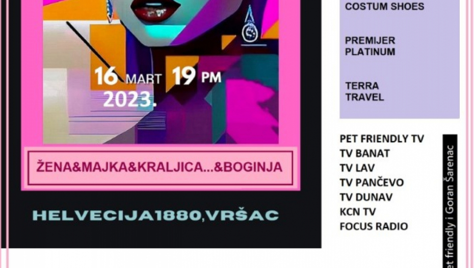 Modna revija Žena, majka, kraljica i boginja biće održana u Vršcu, u vinariji Helvecija 1880, 16. marta sa početkom u 19h.