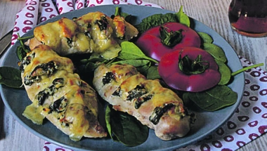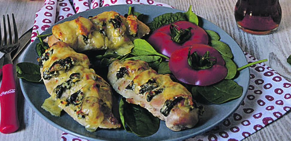 Na malo ulja propržite bebi spanać 3-4 minuta. Dodajte sir, promešajte da se otopi. Sklonite sa vatre, preručite u drugi sud, ostavite da se prohladi i malo stegne. Piletinu operite i nožem zasecite na svakih 2 cm, ali ne do kraja. U svaki rez stavite malo fila sa sirom i spanaćem. Piletinu pospite suvim začinom, a onda odozgo stavite trapist - listiće ili narendan. Pecite u zagrejanoj rerni na 200 stepeni 25 minuta, a pri kraju možete uključiti opciju grila.