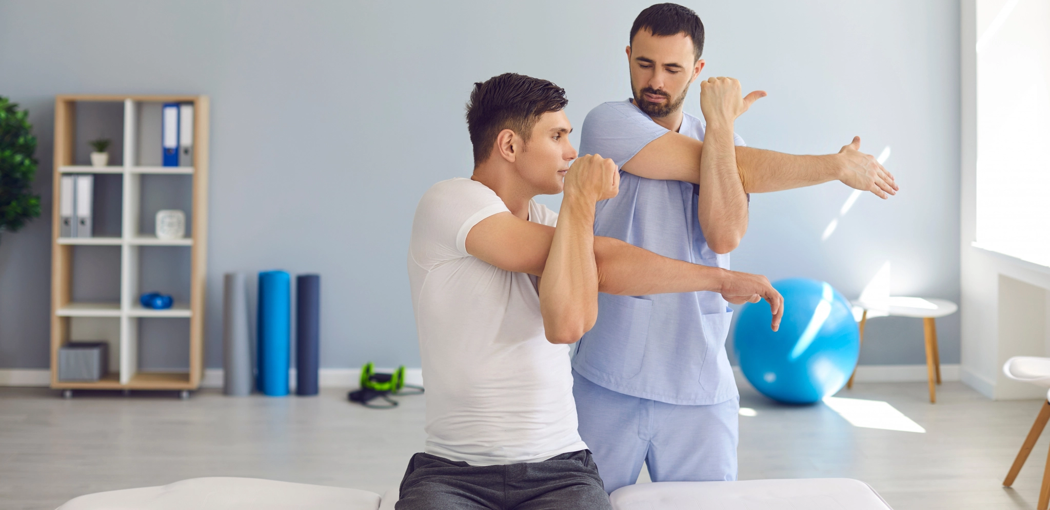 *Kineziterapija je usmerena ka mobilizaciji zgloba, istezanju zglobne kapsule i skraćenih mekih struktura, povećanju pokretljivosti i jačanju mišića ruku i ramena.