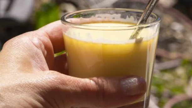 Priprema: Stavite šećer u vodu i zagrejte na laganoj vatri. Dodajte luk isečen na veće komade i đumbir koji ste narendali. Kada voda provri, dodajte kurkumu, smanjite vatru i pustite da se još malo kuva. Kada se smesa prepolovi, ocedite je i tečnost iz nje stavite u čašu ili bokal.