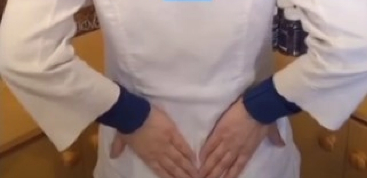 "Preklopite nadlanicu jedne ruke drugom i stavite (dlanom nadole) na deo između grudi. Uz jači pristisak spuštajte tako postavljene ruke sve do donjeg stomaka. Ovu vežbu uradite 36 puta."