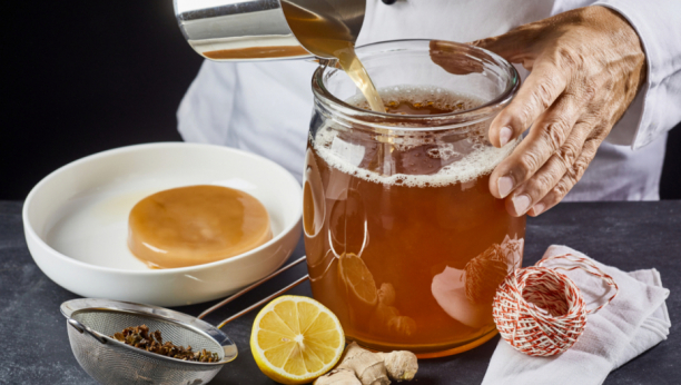 Đumbir oljuštiti, narezati na kockice i dodati u vodu s ostalim sastojcima.