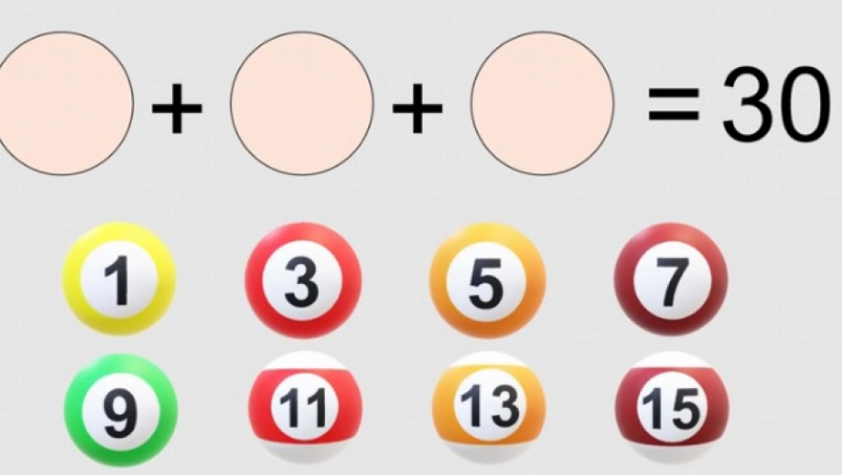 Morate odabrati tri različite kugle i staviti ih u krugove tako da njihov zbir bude 30.