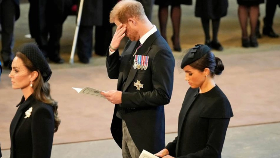 Pored njega je bila i supruga Megan Markl čiji je potez razbesneo javnost, gde su mnogi tvrdili da je ispala licemerna. Fotografima ništa nije promaklo pa su uspeli da uslikaju Harija kako briše suze. Tu su bili i Harijev brat Vilijam i njegova supruga Kejt Midlton, koji takođe nisu skrivali emocije.
