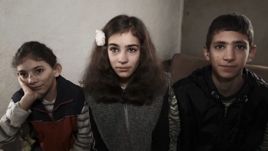 Pored Lutke, sramežljivo stoje njen brat i sestra Dušan (13) i Aleksandra (11). Njih su posetili ljudi iz humanitarne organizacije Srbi za Srbe i pokazali im svoju kuću.