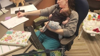 Malodi Džet Blekvel je uživala u jednom takvom tihom trenutku kada ju je njen šef uhvatio kako se odmara u svojoj kancelarijskoj stolici sa novorođenom bebom na stomaku. Melodi je bila srećna što joj je odobreno da radi od kuće nakon njenog rođenja, ali je znala da će uskoro morati da se vrati na posao.
