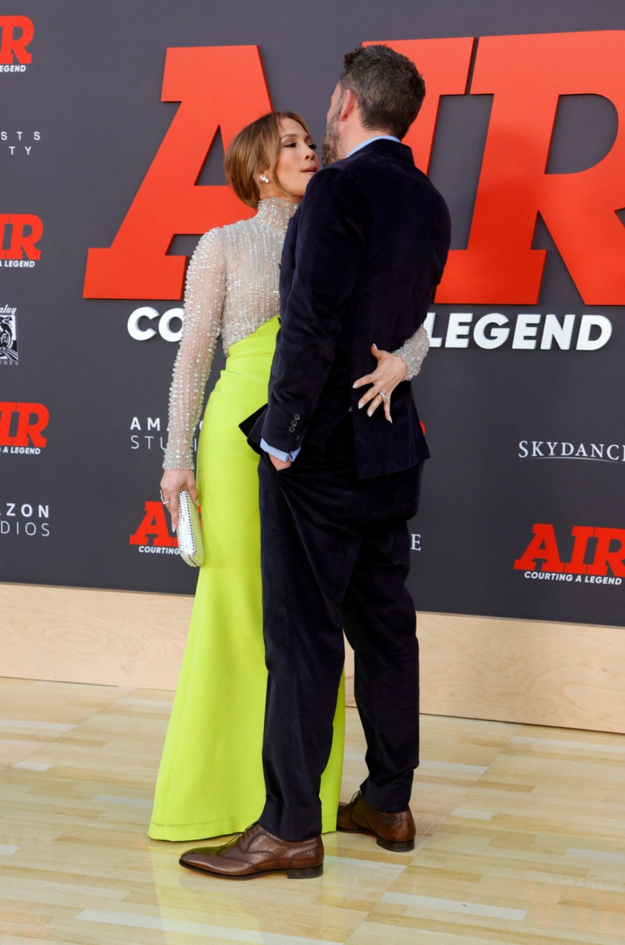 Dženifer Lopez izašla je zajedno sa suprugom Benom Aflekom u ponedeljak uveče na premijeru njegovog novog filma Air u Los Anđelesu, nudeći poljubac podrške na crvenom tepihu.